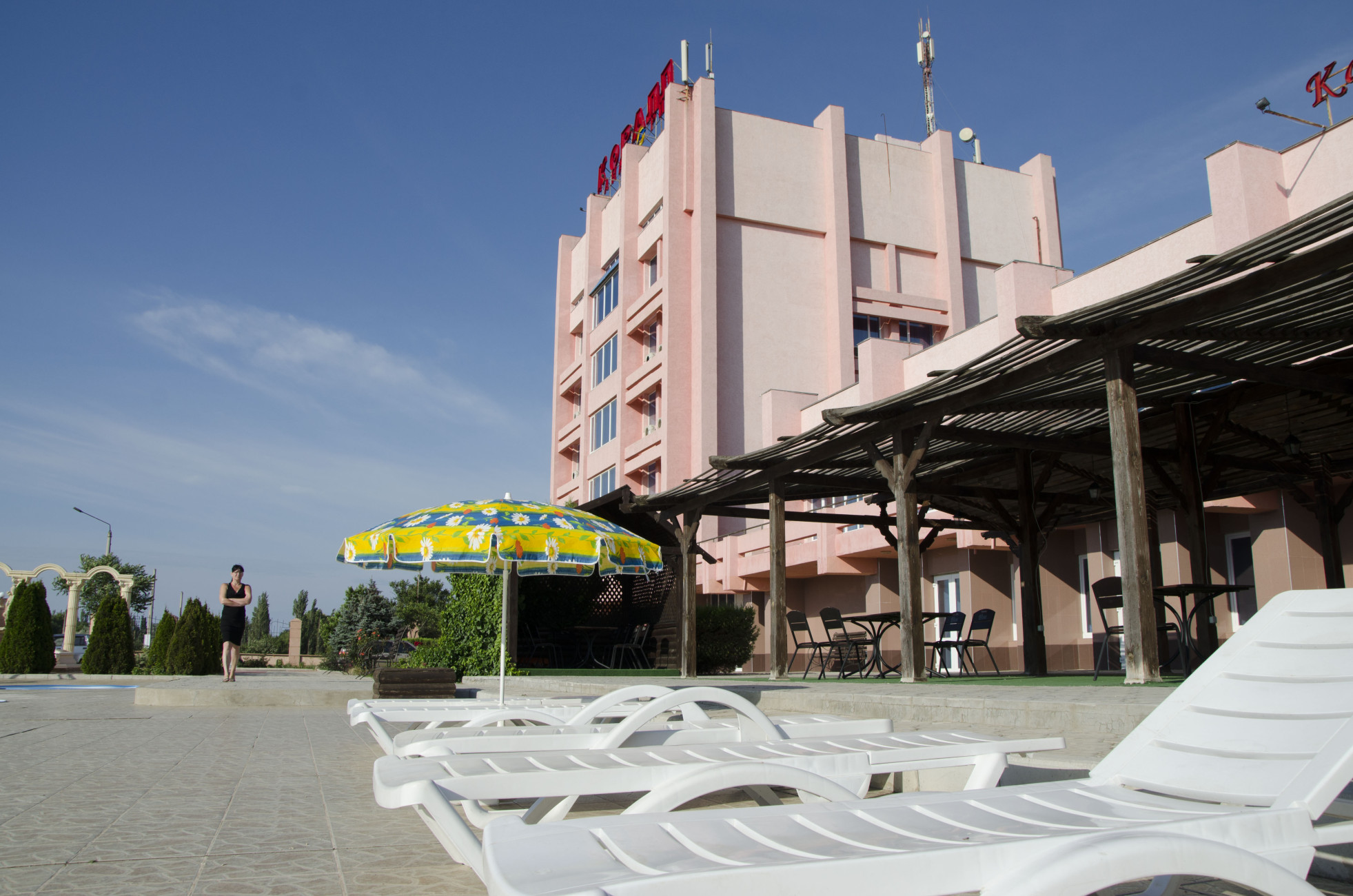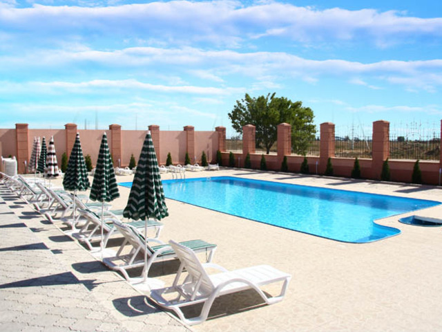 - Открытые бассейны (взрослый и детский) на территории санатория с предоставлением шезлонгов и зонтов